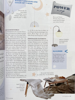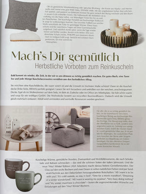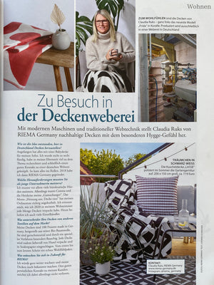 Hier präsentieren wir stolz Fotos von Presseveröffentlichungen, die unsere kuscheligen Decken zeigen. Taucht ein in die Welt von RIEMA und entdeckt, wie unsere Kuscheldecken in verschiedenen Magazinen präsentiert werden.